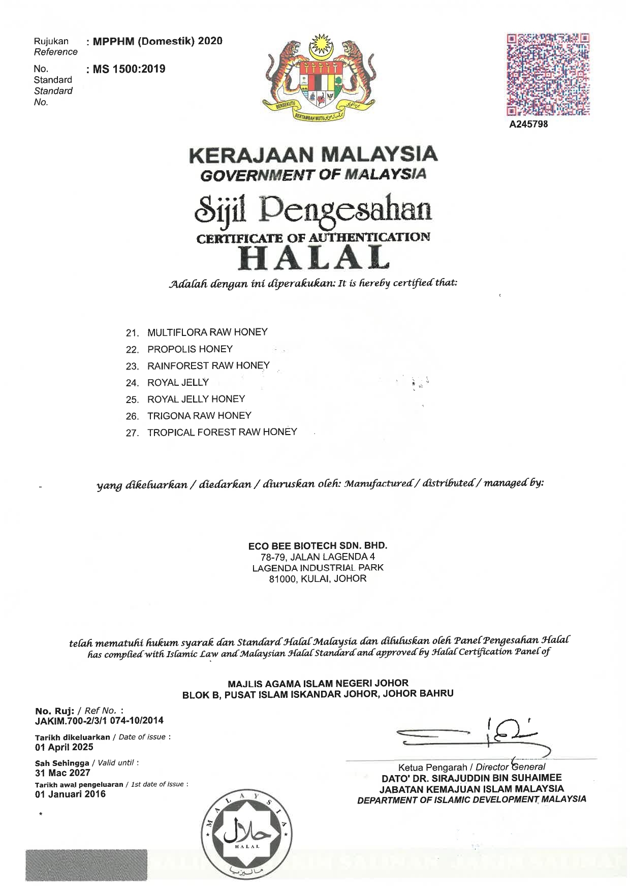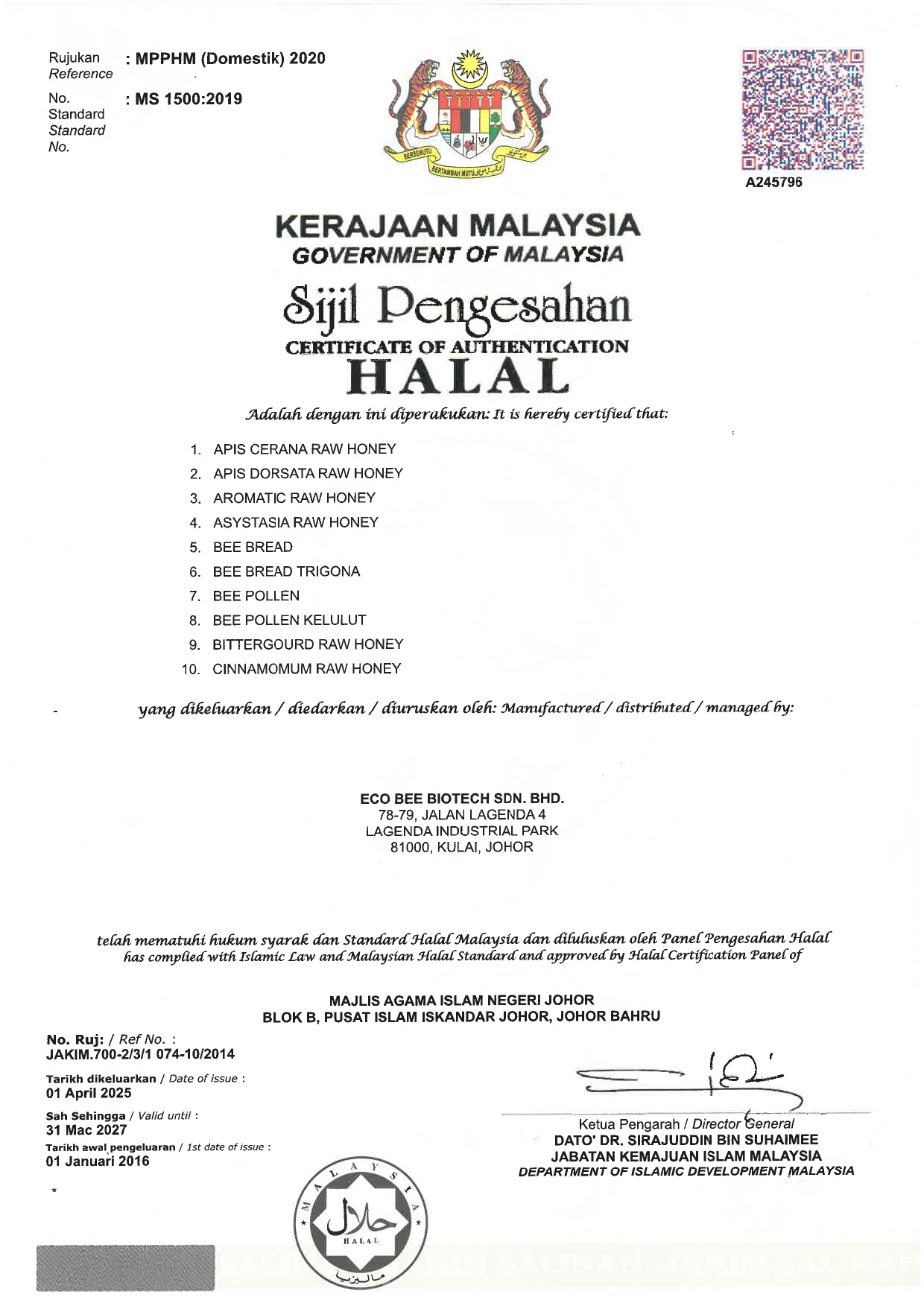 We take great pride in announcing that our products are now officially 100% Halal certified by JAKIM. This certification underscores our commitment to providing customer with quality products that adhere to the highest standard of Halal integrityWe adhere to the principles of Halal by ensuring that every operating process and every product served meets the requirements and demands set by the Malaysian Halal Certification Procedures Manual. In order to fulfill our customers' trust to ensure high-quality Halal food is being prepared well from our factory before going to the customers.